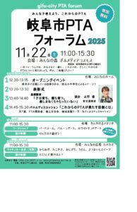 みんなで考えよう、これからのPTA と題して 11月22日(土)11:00~ みんなの森 ぎふメディアコスモスで開催されます可児市PTA連合会 岩井会長が14:45~ パネルディスカッションにパネリストとして登壇されます […]